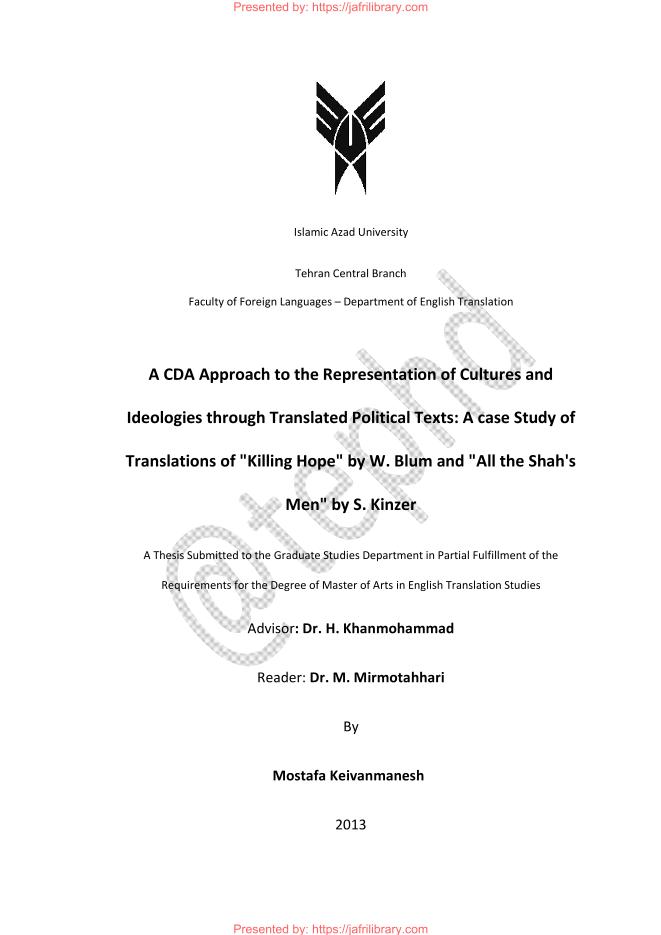 A Cda Approach To The Representation Of The Cultures And Ideologies Through Political Texts # | Hidayat Library - Offers a vast collection of Shia Islamic books