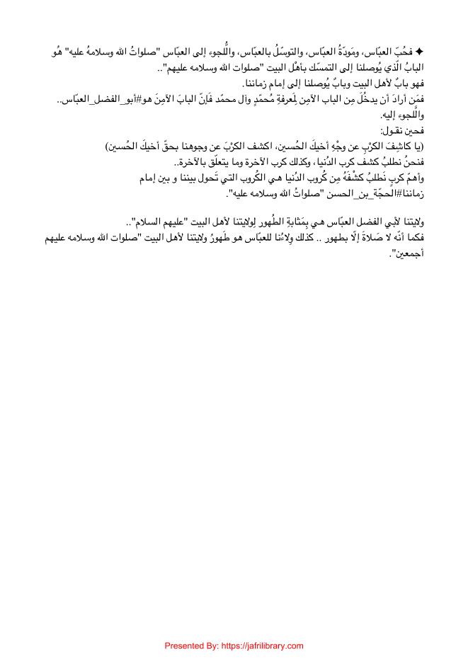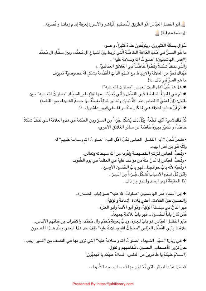 Abul Fazlil Abbas Howa Tariqul Mustaqim Mubashir Wal Usra'a Le Marifate Imame Zamanana Wa Nusratehi العبّاس_هُو_الطريق # | Hidayat Library - Offers a vast collection of Shia Islamic books