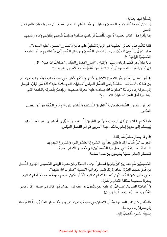 Abul Fazlil Abbas Howa Tariqul Mustaqim Mubashir Wal Usra'a Le Marifate Imame Zamanana Wa Nusratehi العبّاس_هُو_الطريق