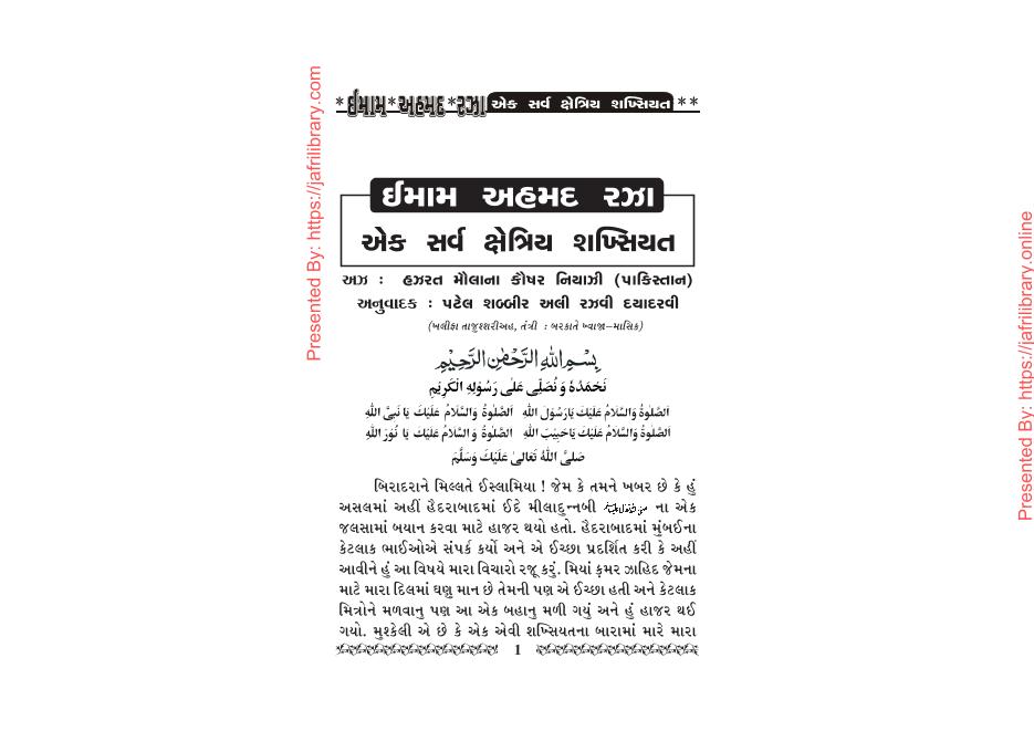Imam Ahmad Raza Sarva Setriya Shakhsiyat